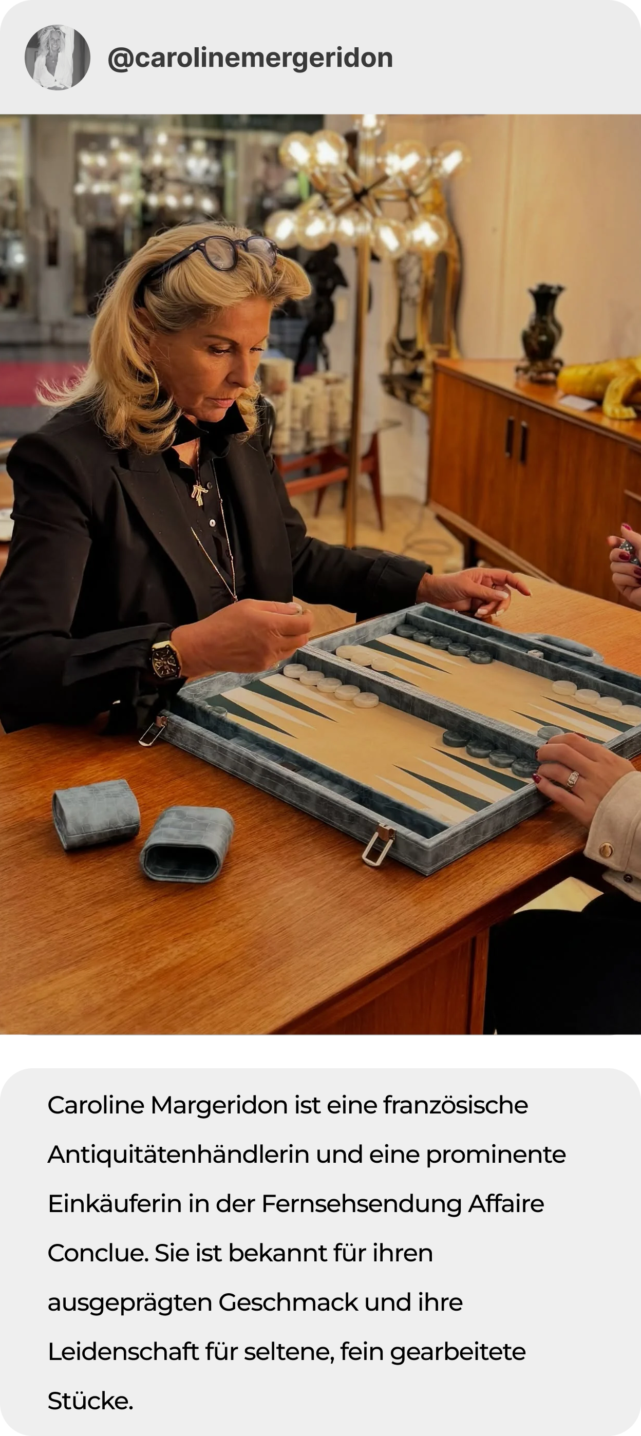 Ob in einer Villa, einem Boutique-Hotel, einer Lounge oder einer exklusiven Residenz – das MB Heritage Backgammon fügt sich harmonisch in jedes anspruchsvolle Ambiente ein.