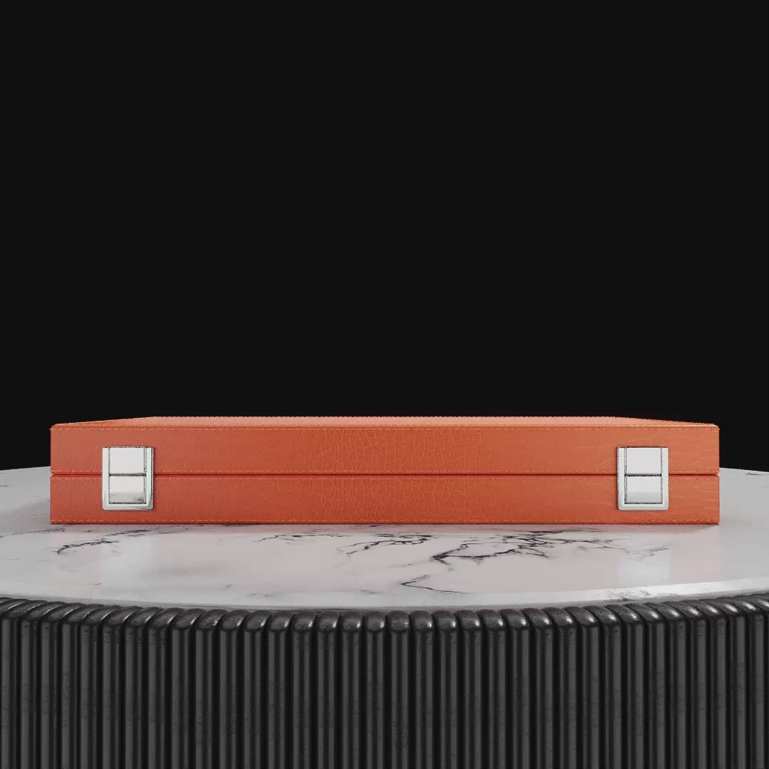 This backgammon model stands out with its exclusive alligator-embossed design and luxurious velvet interior. It is both elegant and practical, with an ideal size for transport, and made from materials carefully chosen for their longevity and aesthetics.