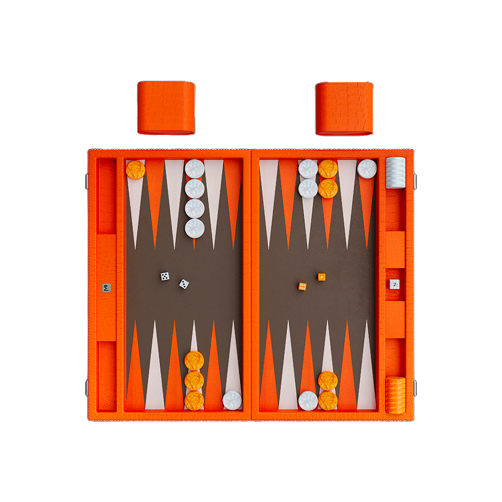 Our Signature Backgammon is crafted from embossed faux alligator leather with a sleek, modern aesthetic.